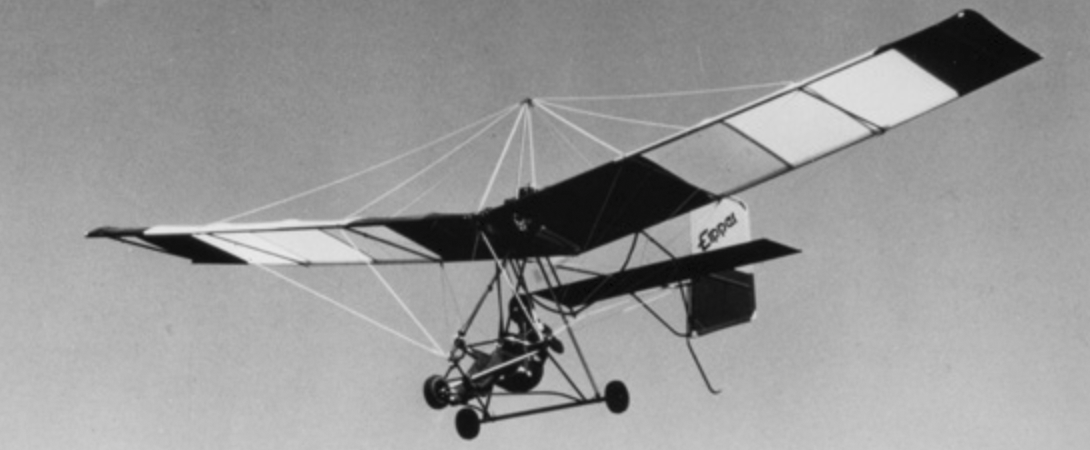 Eipper added a seat, wheels, and a small engine behind the wing of the hang glider, and the Quicksilver ultralight was born. This aircraft was controlled by pushing a bar forward and backwards, and side to side, in the same way that hangliders are controlled. This shifted the center of gravity of the aircraft and allowed the pilot to control the plane. Many pilots wanted an aircraft that was controlled with a stick and rudder, similar to the way “typical” light airplanes are controlled, so Eipper added rudder and elevator control surfaces to the Quicksilver ultralight, giving it two axis of control. This aircraft was called the Quicksilver MX. The high dihedral of the wings caused the plane to bank when the aircraft was turned with the rudder, but there was no direct means of controlling the roll axis of the airplane—the aircraft only rolled in response to the yaw axis. Pilots still wanted a true 3-axis control ultralight, so Eipper added spoilers. The next generation of MX had true ailerons which gave the aircraft full roll authority. |